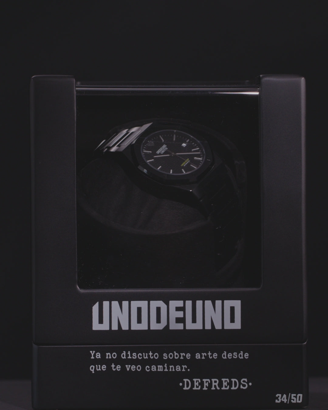 The perfect accessory to keep the movement going without needing daily use. Each winder is personalized with an exclusive Defreds phrase inscribed on the outside, making each piece both a literary and mechanical object. Designed as an extension of the watch, it symbolizes the passage of time as art, word, and precision. Product Details